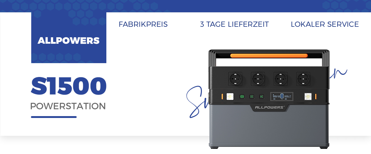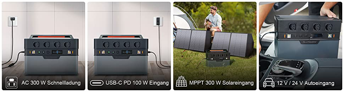 ALLPOWERS S1500 portable Power Station wird über die AC-Steckdose und den USB-C gleichzeitig geladen, dauert nur 3 Stunden von 0-100%.
