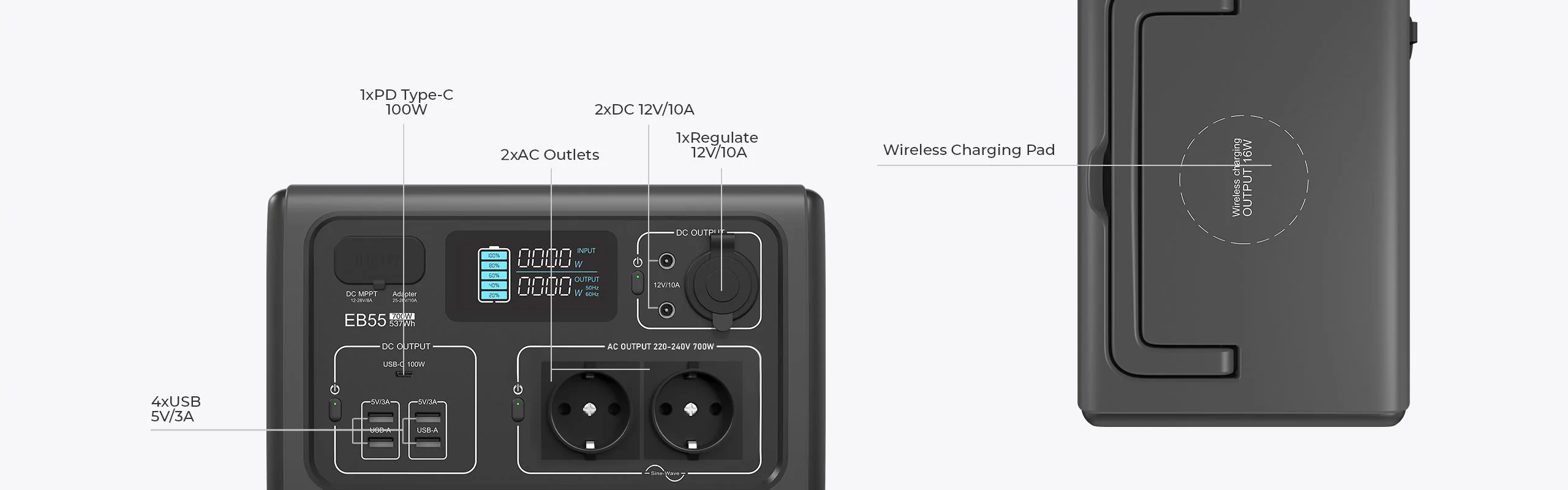 - 2 x 220V-240V/700W Wechselspannungs-Ausgänge