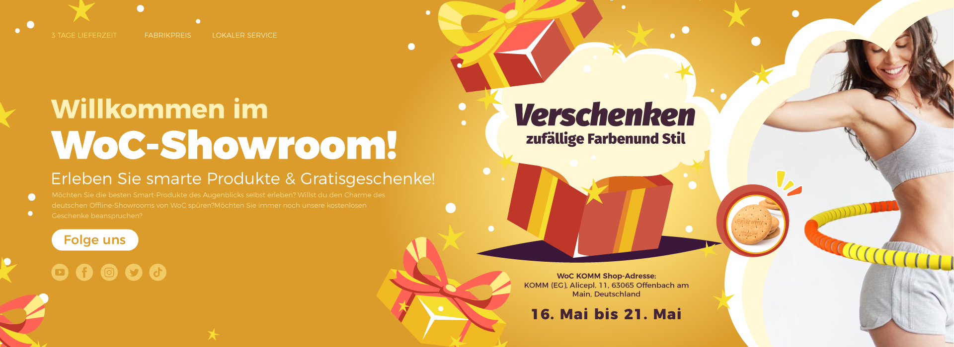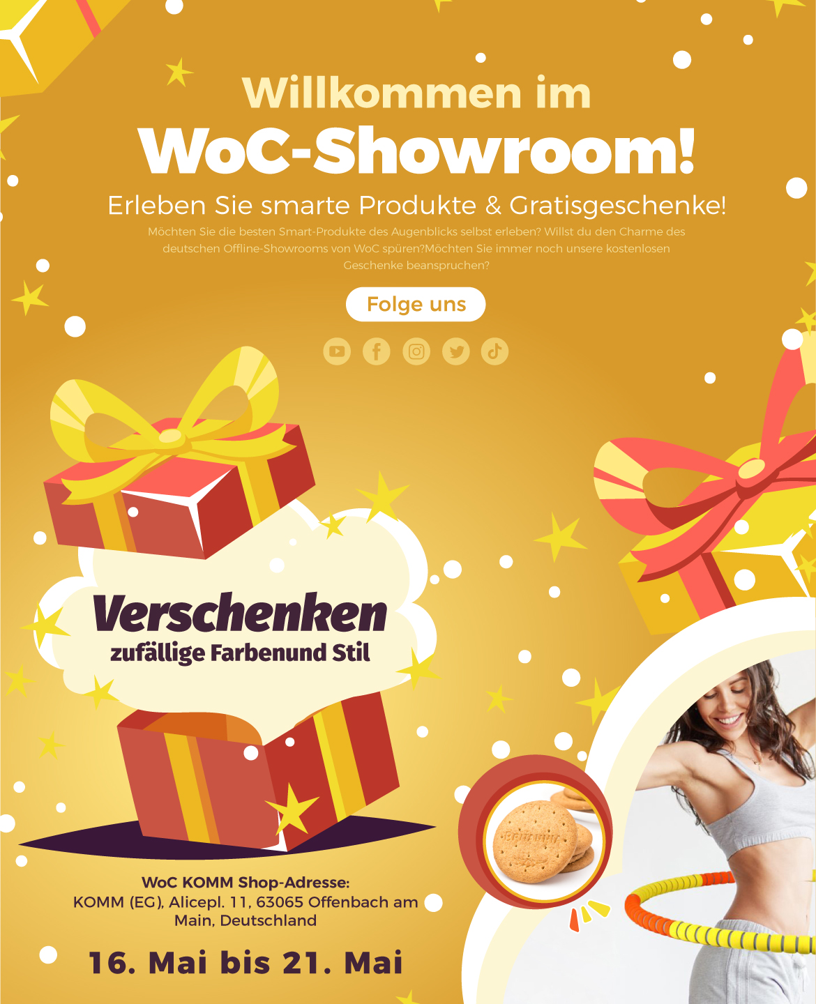 Bitte achten Sie auf die Updates auf unseren SNS-Plattformen, unsere Veranstaltung wird bald gestartet. Wir freuen uns darauf, Sie im WoC-Showroom zu treffen!