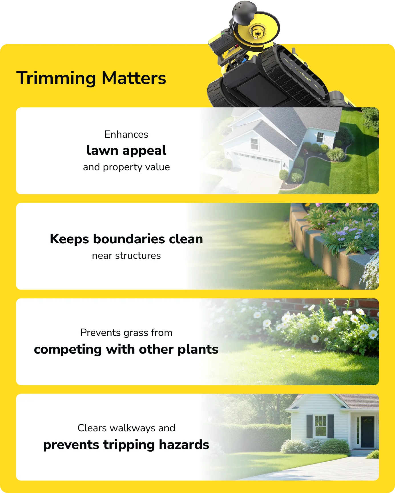 Mowing is fun, but walking around the whole lawn trimming the edges? Let Yarbo trim while you relax. No need to hold or guide—just set it and forget it.
