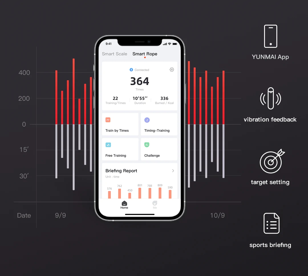 Das Training mit einem intelligenten Springseil ist eine hervorragende Möglichkeit, um in Ihre Aerobic-Übungen einzusteigen. Im Vergleich zu anderen Cardio-Workouts bietet es typischerweise eine höhere Fettverbrennungseffizienz und trainiert und verbessert die allgemeine Koordination und Beweglichkeit. Es ist einfach zu verwenden, um Schmerzen in Hals- und Lendenwirbeln zu lindern, sodass Sie Ihre Geschwindigkeit finden und perfektionieren können, während Sie springen.